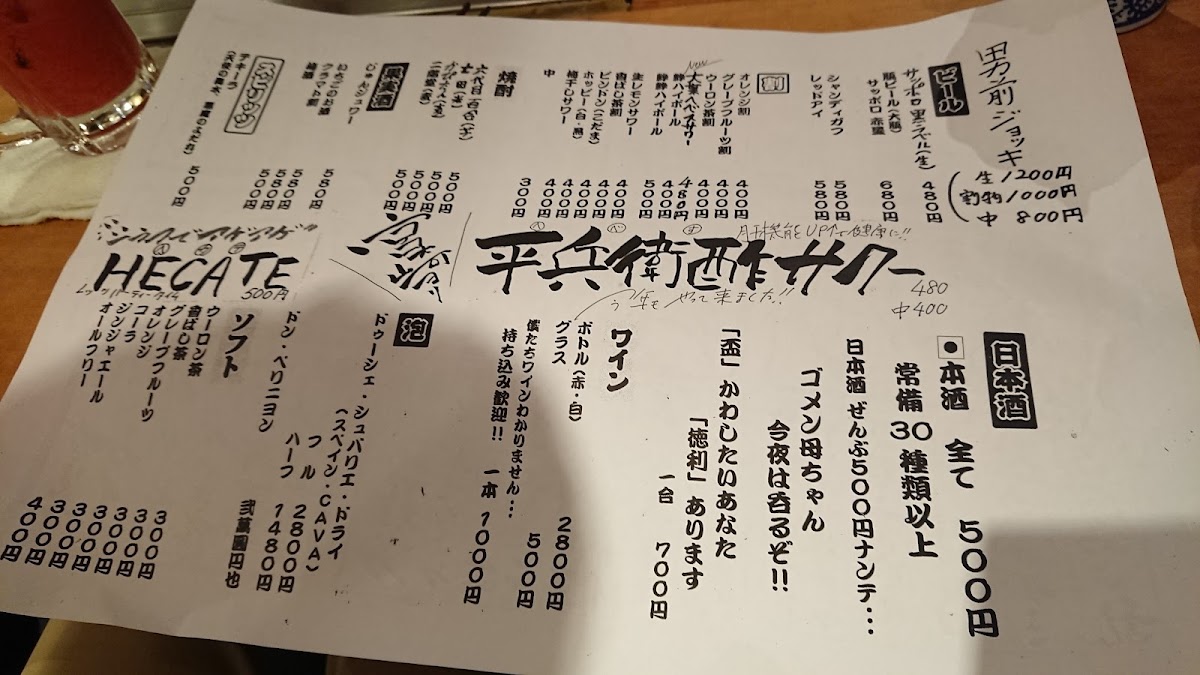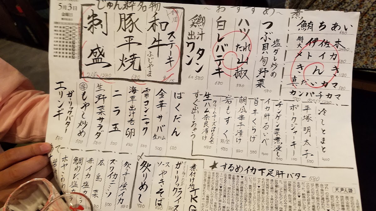 Bakawarai Junsui Menu